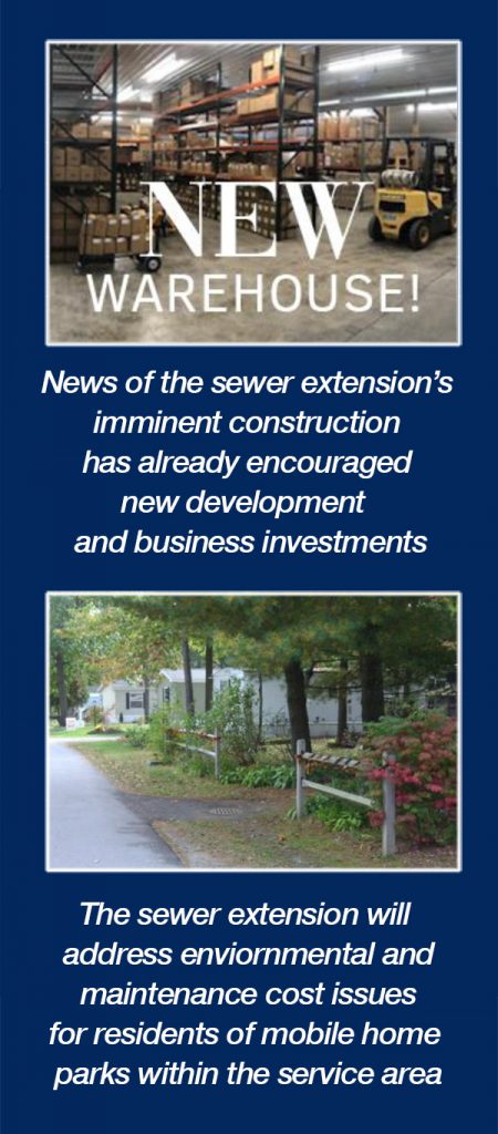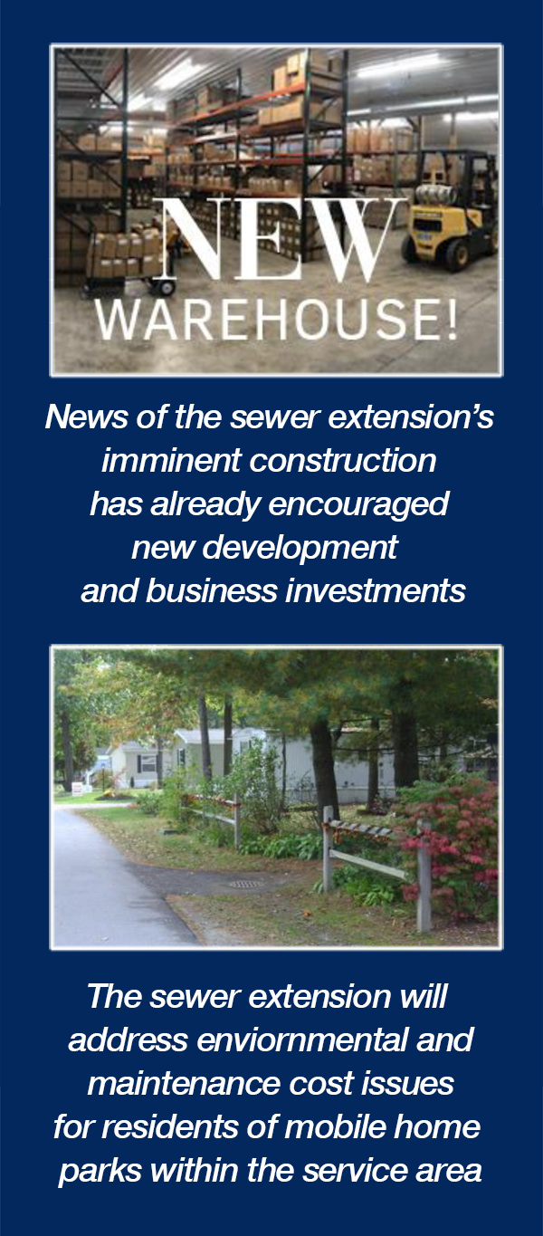 The sewer extension is as much an economic development initiative as it is a sewer infrastructure undertaking. News of the sewer extension’s imminent construction has already encouraged investments from business owners and developers. These developments will bring much-needed jobs to the Town, while expanding and diversifying the tax base.